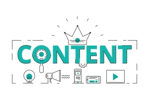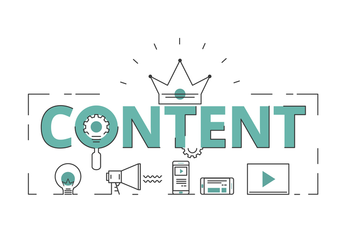Flat line design word content concept of content digital marketing with icons and elements. Can be used for book cover, report header, presentation,infographics, printing, website banner. Vector Illustration.