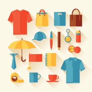 Icon set of promotional gifts and souvenirs.