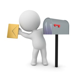 3D Character hidding behind retro mailbox 3D Character hidding behind retro mailbox. 3D Rendering isolated on white.