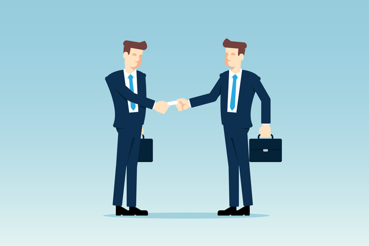 Businessmen Exchanging Business Card