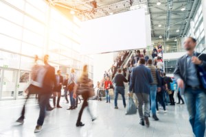 blurred business people at a trade fair