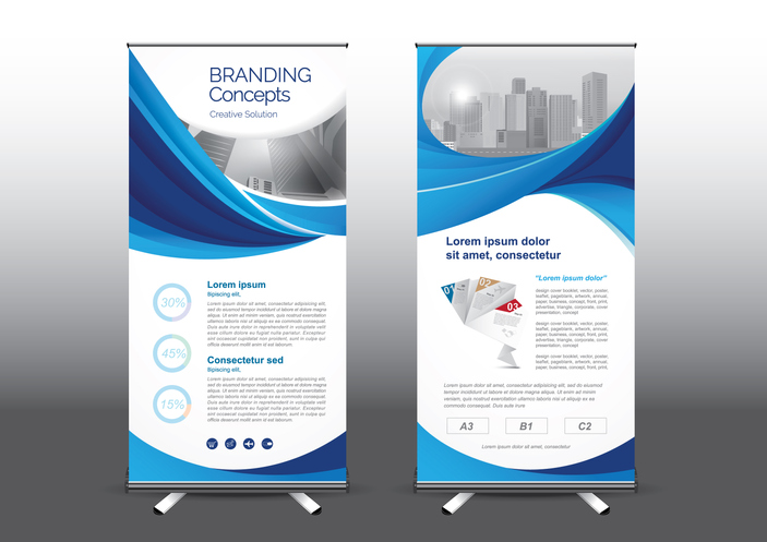 Roll Up template vector illustration, Designed for style applied to the expo. Publicity banners, business model, vertical blue and green tones they use.