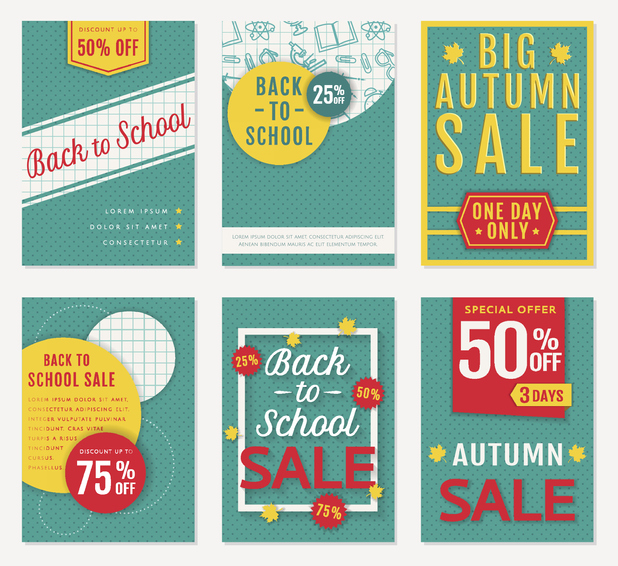 School and autumn sale banners. Back to school and autumn discount banners. Templates of advertising flyers for the seasonal sales. Vector set.