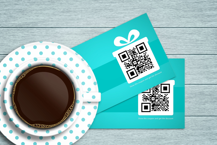 discount coupons lying on wooden desk with coffee christmas coupons lying on wooden desk with coffee. qr code is designed and generated by author